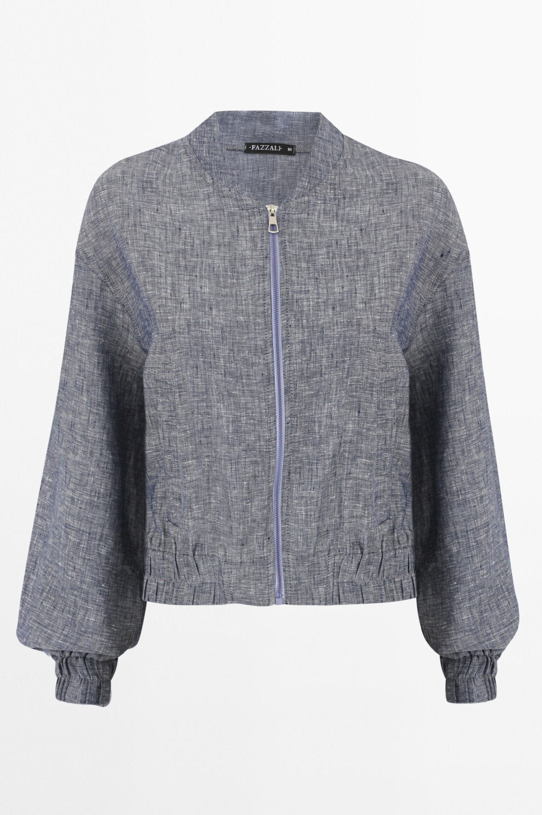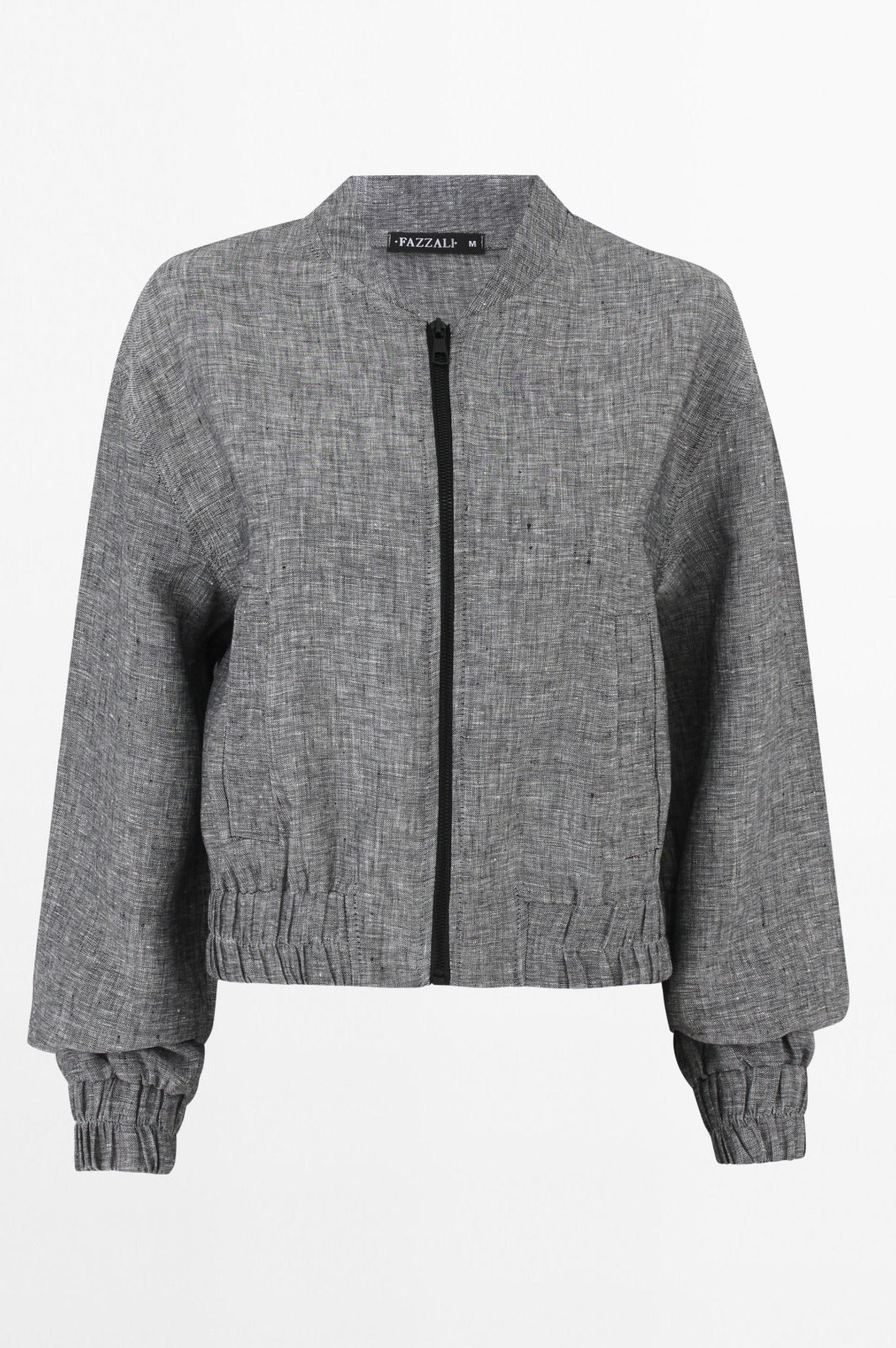 Wool Polka Dots Multi Colored Pattern Jacket With Black Sleeve Trim Detail & Zipper