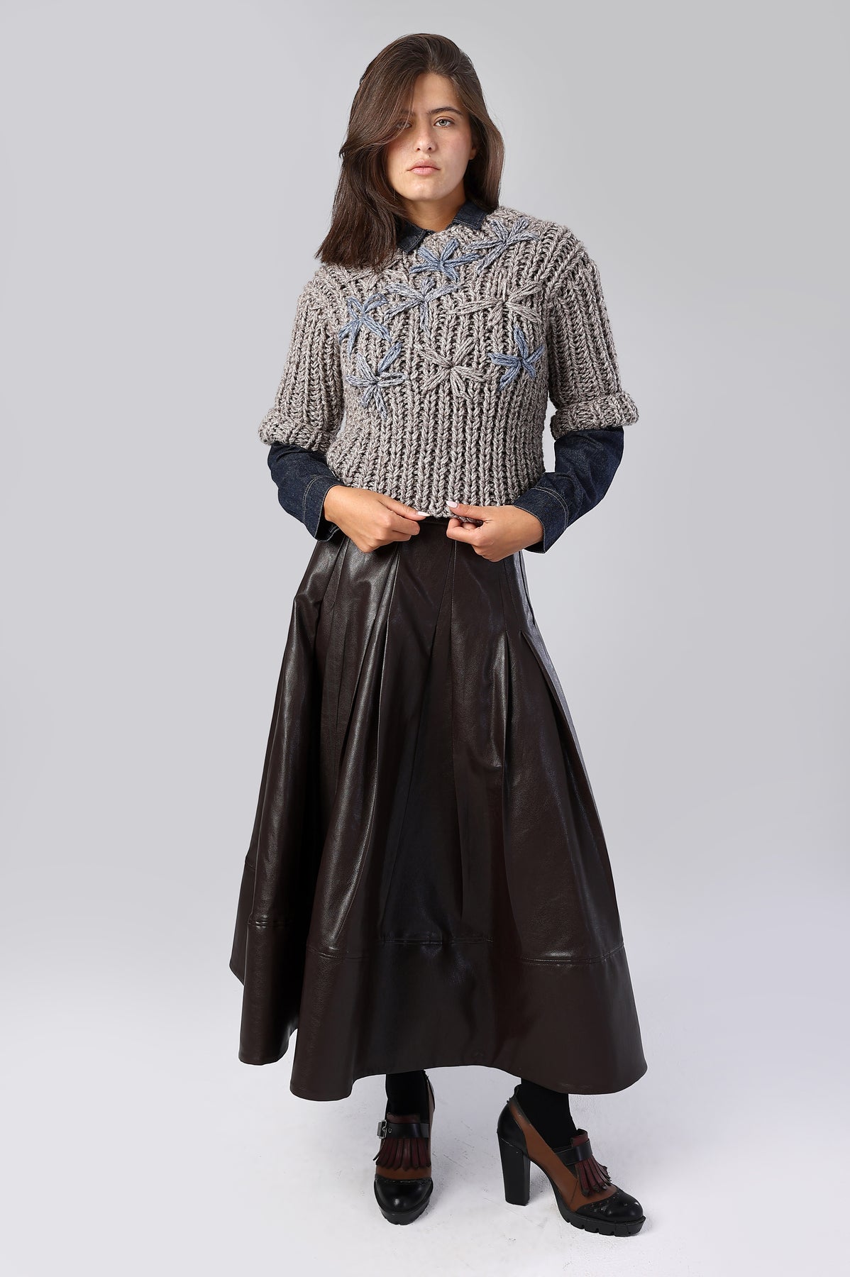 Pair The Amora Knit with tailored trousers, high-waisted skirts, or denim for a look that is both graceful and modern. This sweater is for those who embrace elegance with subtle strength and unapologetic style.